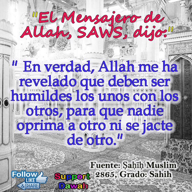 En verdad, Allah me ha revelado que deben ser humildes los unos con los otros, para que nadie oprima a otro ni se jacte de otro.