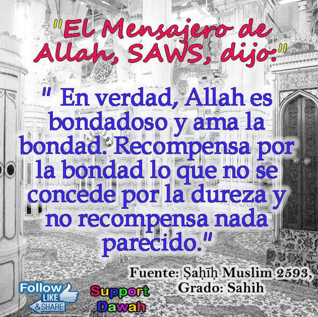 En verdad, Allah es bondadoso y ama la bondad. Recompensa por la bondad lo que no se concede por la dureza y no recompensa nada parecido.