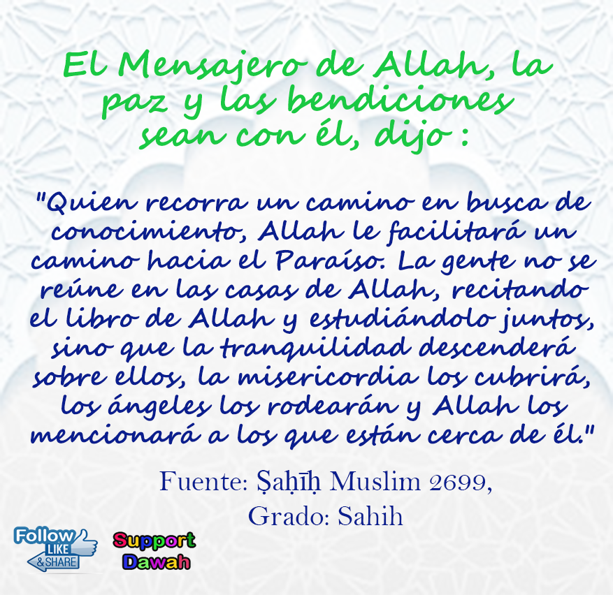 ومن سلك طريقا يلتمس فيه علما سهل الله له به طريقا إلى الجنة وما اجتمع قوم في بيت من بيوت الله يتلون كتاب الله ويتدارسونه بينهم إلا نزلت عليهم السكينة وغشيت