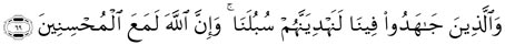 « Et quant à ceux qui luttent pour Notre cause, Nous les guiderons certes sur Nos sentiers, Allah est en vérité avec les bienfaisants »5.