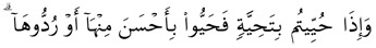 « Si on vous fait une salutation, saluez d’une façon meilleure ou bien rendez-là (simplement). »2