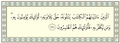 Allah, qu'Il soit Exalté, dit: « Ceux à qui Nous avons donné le Livre, qui le récitent comme il se doit, ceux-là y croient. Et ceux qui n'y croient pas sont les perdants. » (Al-Baqarah 121)