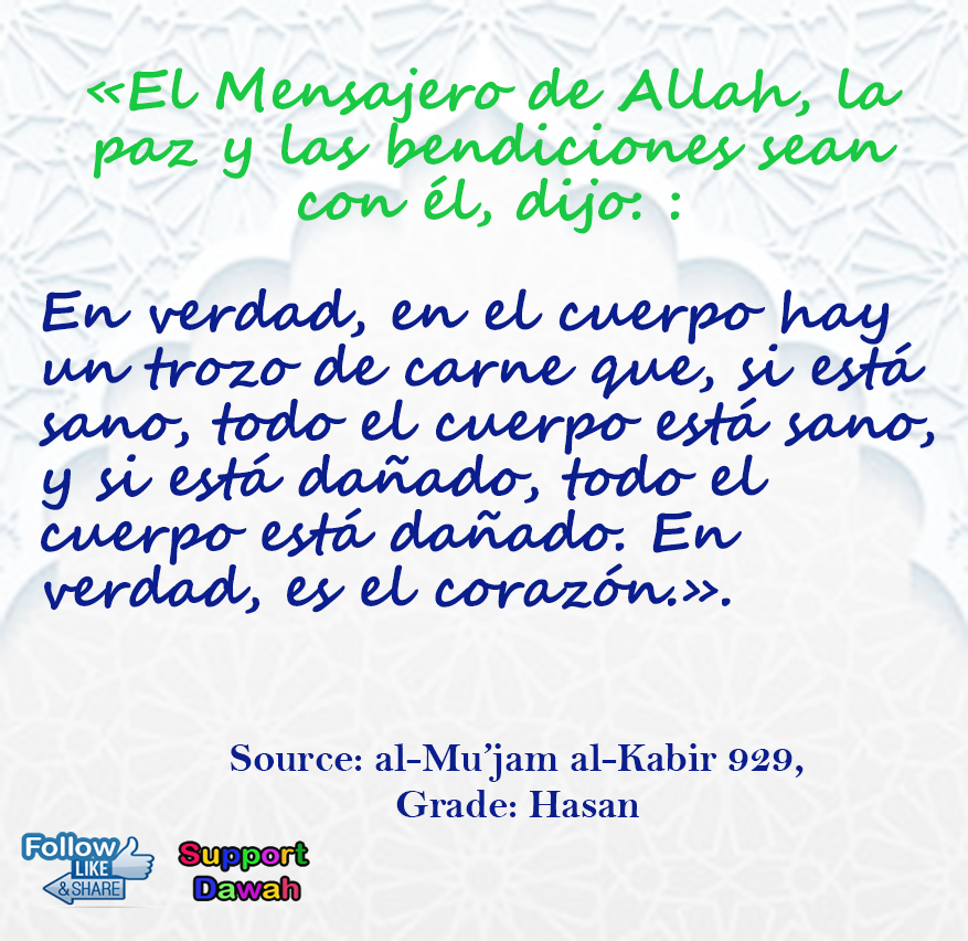 أَلَا وَإِنَّ فِي الْجَسَدِ مُضْغَةً إِذَا صَلَحَتْ صَلَحَ الْجَسَدُ كُلُّهُ وَإِذَا فَسَدَتْ فَسَدَ الْجَسَدُ كُلُّهُ أَلَا وَهِيَ الْقَلْبُ