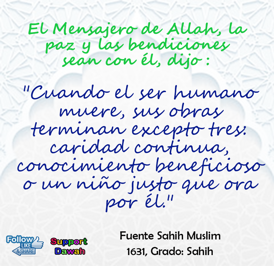 إِذَا مَاتَ الْإِنْسَانُ انْقَطَعَ عَنْهُ عَمَلُهُ إِلَّا مِنْ ثَلَاثَةٍ إِلَّا مِنْ صَدَقَةٍ جَارِيَةٍ لأَوْ ح عي