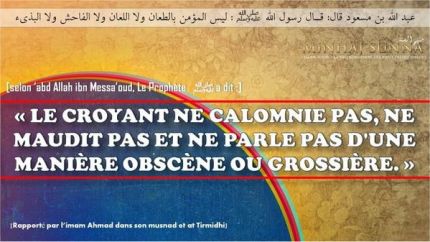 Selon Abdoullah ibn Mess’oud, le Prophète, qu’Allah prie sur lui et le salue, a dit : « Le musulman ne diffame pas, ne maudit pas, n’est pas