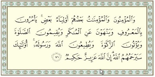 Allah, qu'Il soit Exalté, dit: « Les croyants et les croyantes sont alliés les uns des autres. Ils commandent le convenable, interdisent le blâmable accomplissent la Salât, acquittent la Zakât et obéissent à Allah et à Son messager. Voilà ceux auxquels Allah fera miséricorde, car Allah est Puissant et Sage.» (At-Tawbah 71)