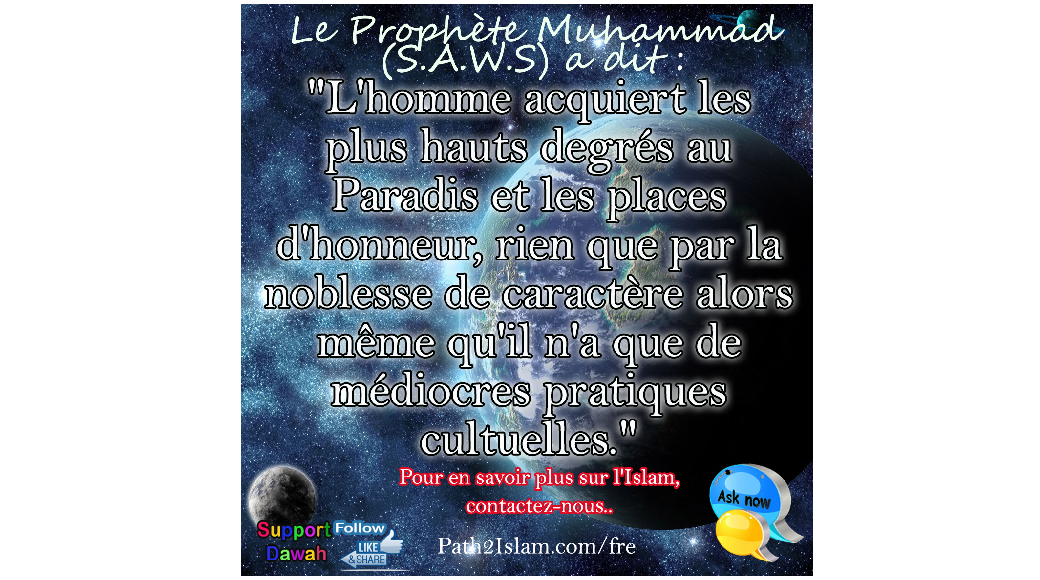 Elle rapporte aussi de lui : « Il n'est rien qui ne soit embelli par la douceur, il n'est rien qui, privé de la douceur, ne soit terni» ( Rapporté par Muslim).