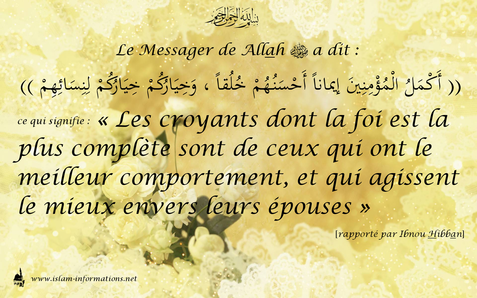 D'après Abou Houreira (qu'Allah l'agrée), le Prophète (que la prière d'Allah et Son salut soient sur lui) a dit: « Ceux d'entre vous qui ont le meilleur Islam sont ceux qui ont le meilleur comportement s'ils s'instruisent » (*).