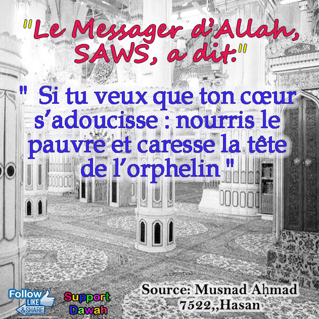إِنْ أَرَدْتَ تَلْيِينَ قَلْبِكَ فَأَطْعِمْ الْمِسْكِينَ وَامْسَحْ رَأْسَ الْيَتِيمِ