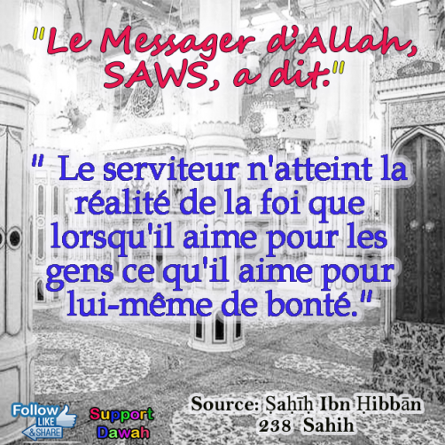 Le serviteur n'atteint la réalité de la foi que lorsqu'il aime pour les gens ce qu'il aime pour lui-même de bonté.