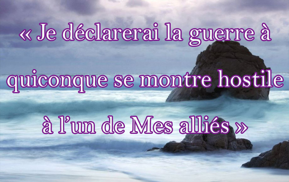 Allah (puissant et sublime) dit : Je déclarerai la guerre à quiconque se montre hostile à l’un de Mes alliés (waliy). Parmi tous les moyens employés par Mon serviteur pour se rapprocher de Moi, rien ne M’est plus agréable que la pratique de ce que Je lui ai imposé. Mon serviteur ne cesse de se rapprocher de Moi par les actes surérogatoires jusqu’à ce que Je l’aime. Une fois que Je l’ai aimé, Je deviens son ouïe avec laquelle il entend, sa vue avec laquelle il voit, sa main avec laquelle il combat et son pied avec lequel il marche. S’il Me demande alors quelque chose Je la lui donne et, s’il Me demande Ma protection, Je la lui accorde. Aucune chose ne Me fait hésiter plus que [de prendre] l’âme de Mon serviteur croyant : il déteste la mort et Je déteste le blesser. [Al-Boukhari]